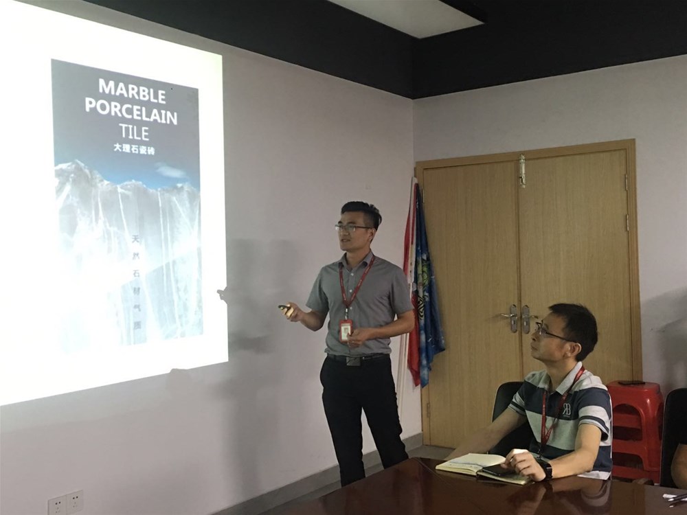 6月8日上午九點(diǎn),金艾陶瓷磚華夏總部二樓會議室舉辦了一場別開生面的《新品推廣—完成下半年度業(yè)績的核武器》-銷售精英演講會,全體銷售精英以及市場部所有人員參與了本次會議。