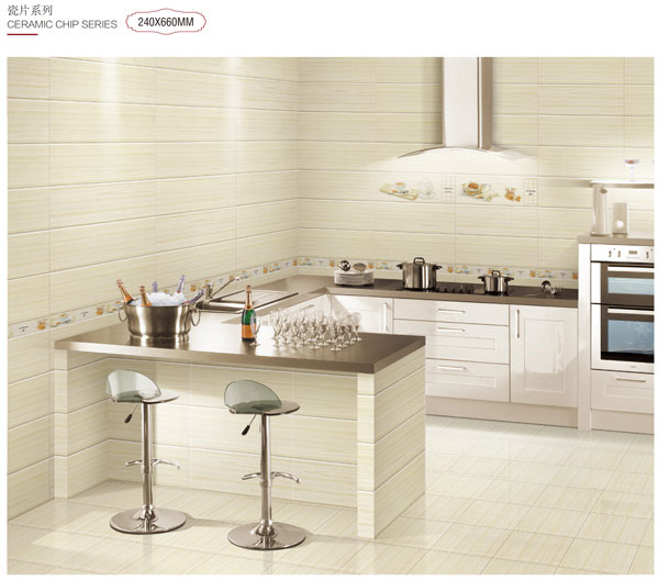 要突出廚房空間變化的效果,深色瓷磚也不再是唯一的選擇。由于淺色瓷磚有利于擴大視野的空間,在較小的廚房空間內能制造更多的時尚效果,越來越受到消費者的追捧。耐看的純白色是最流行的色澤,它甚至不需要任何的暗花或斜紋、圖案,僅以各色飾線和花片加以點綴,便能帶出明快、時尚的感覺。淺藍、蘋果綠、淺紫色等冷色調瓷磚也非常流行,它們多與白色瓷磚搭配起來鋪砌。