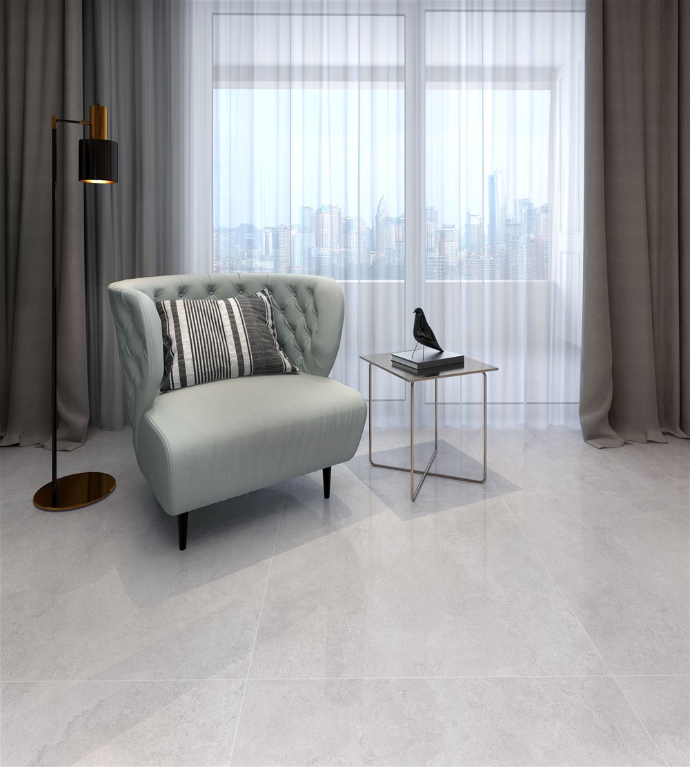 白色的表面素雅而寧靜,灰色線條橫跨其中,自然而純粹,色澤素凈大方,光感柔和自然,似乎是將一層薄薄的絲綢印刻在瓷磚的表面,縷縷輕絲纏繞,觸感舒適細膩,帶來如綢緞般絲滑體驗。